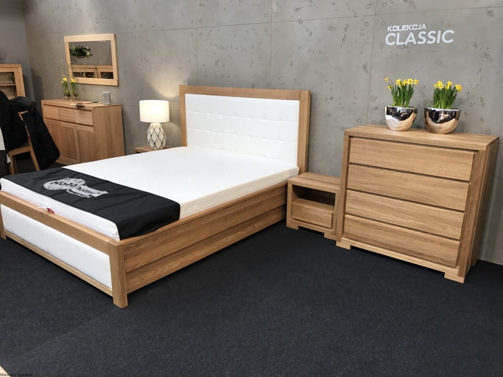 - Meble wykonane z drewna dębowego.