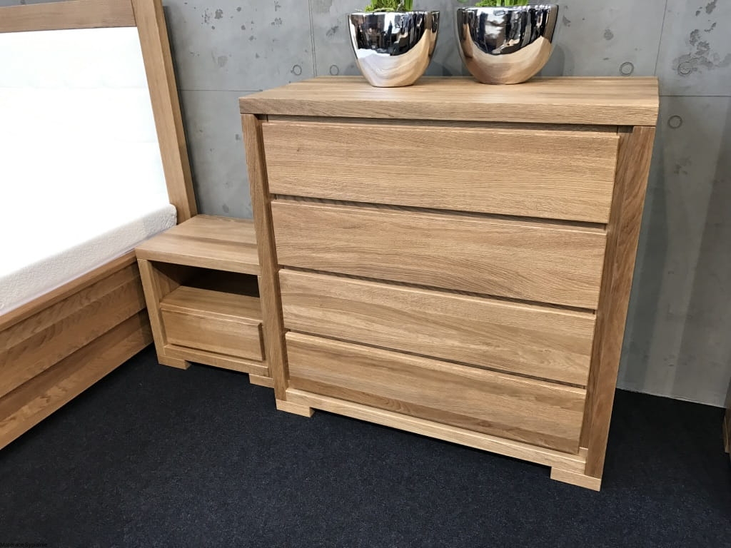 Komoda KD353 wykonana z drewna dębowego, idealnie nadaje się do przechowywania drobnych przedmiotów. Zaprojektowana w prostym, klasycznym stylu. Szuflady nie posiadają uchwytów. Naturalna kolorystyka drewna dębowego oraz modny design komody idealnie wpasuje się w klasyczną aranżację wnętrza w Twoim domu.