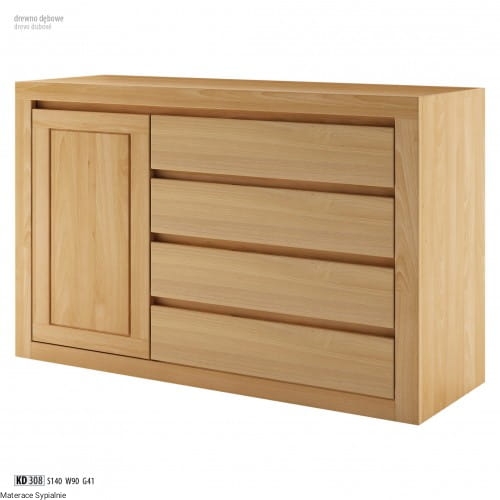 komoda dębowa 4 szuflady + Drzwiczki KD 308